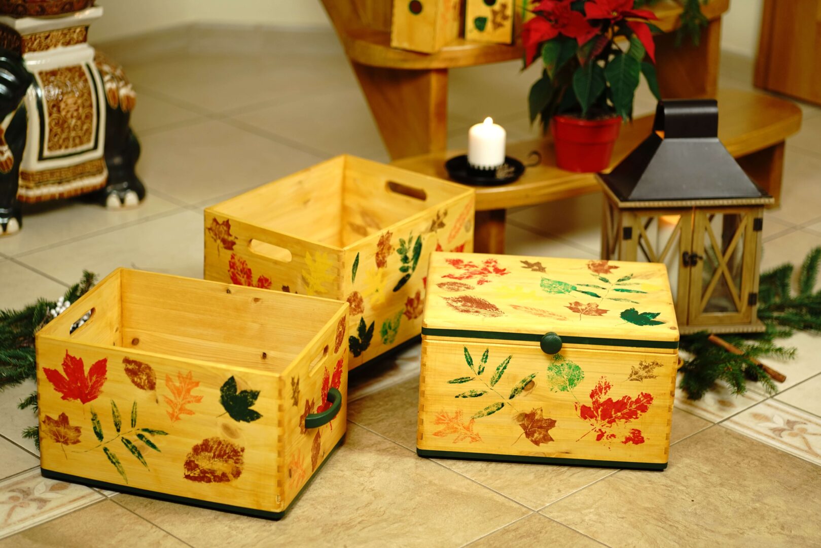 Piękny i niepowtarzalny wózek/komódka na kółkach w jesiennych barwach, malowany farbami akrylowymi oraz lakierobejcą w kolorze sosny, zabezpieczony lakierem bezbarwnym. Dodatkowe boczne rączki dla łatwiejszej mobilności. Wymiary: wys.75cm, gł.30cm, szer.40cm + 6 cm rączki. Na zamówienie możliwość namalowania w innej kolorystyce i wzorze. Termin realizacji do 10 dni roboczych.