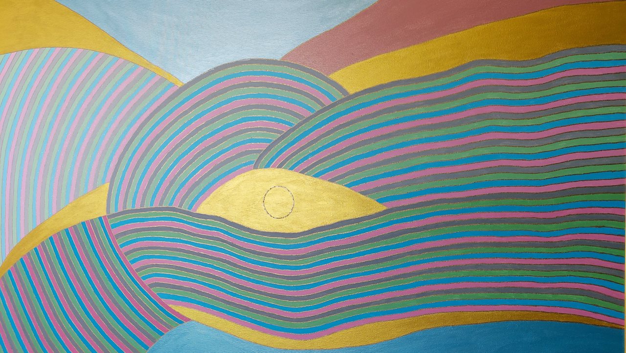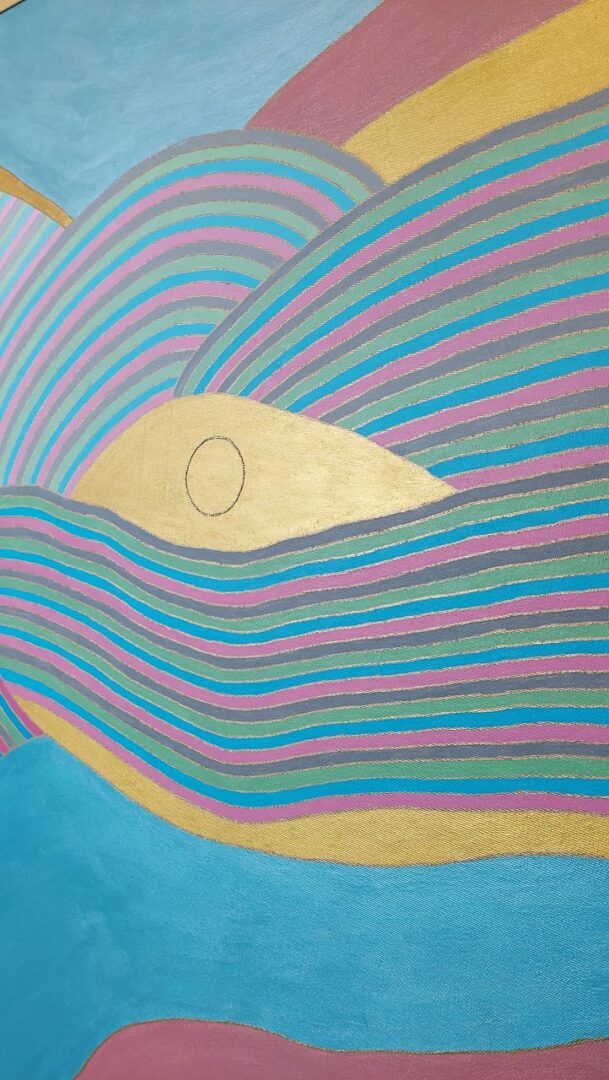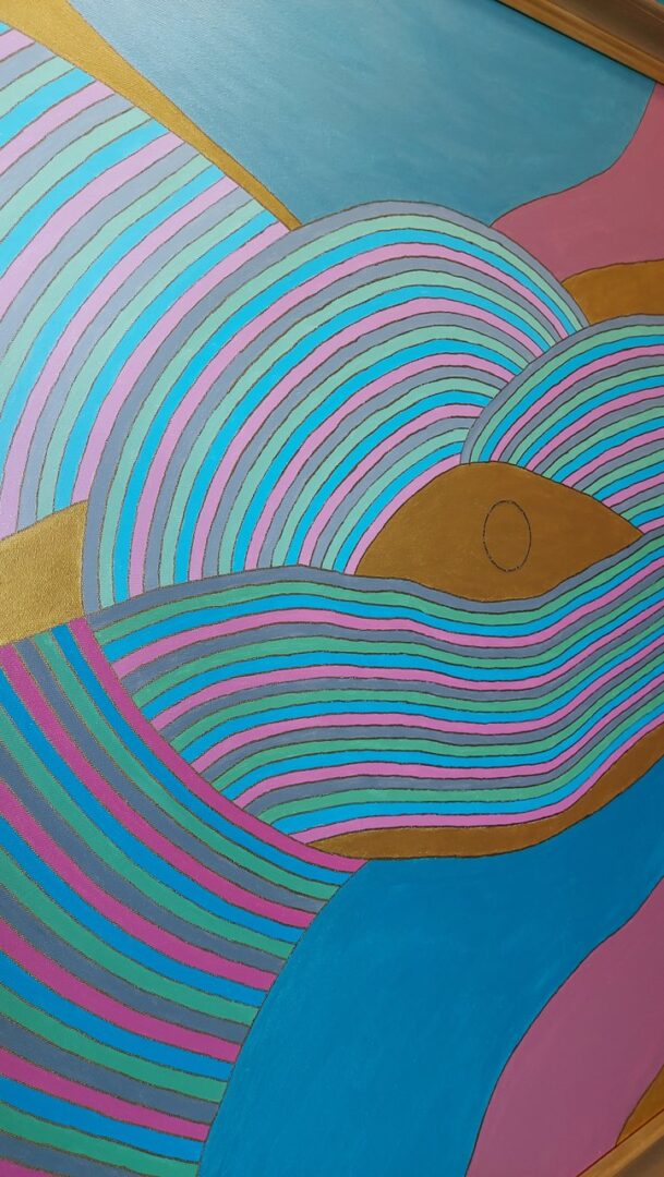 Ponadczasowy obraz o całkowitych wymiarach 110cm x 130cm wraz z drewnianą ramą w kolorze złota, wykonany farbami akrylowymi, cieniowany, ozdobiony kamieniami Swarovskiego, wykonany w spokojnych i ciepłych pastelowych kolorach, przynoszący spokój i ukojenie duszy.