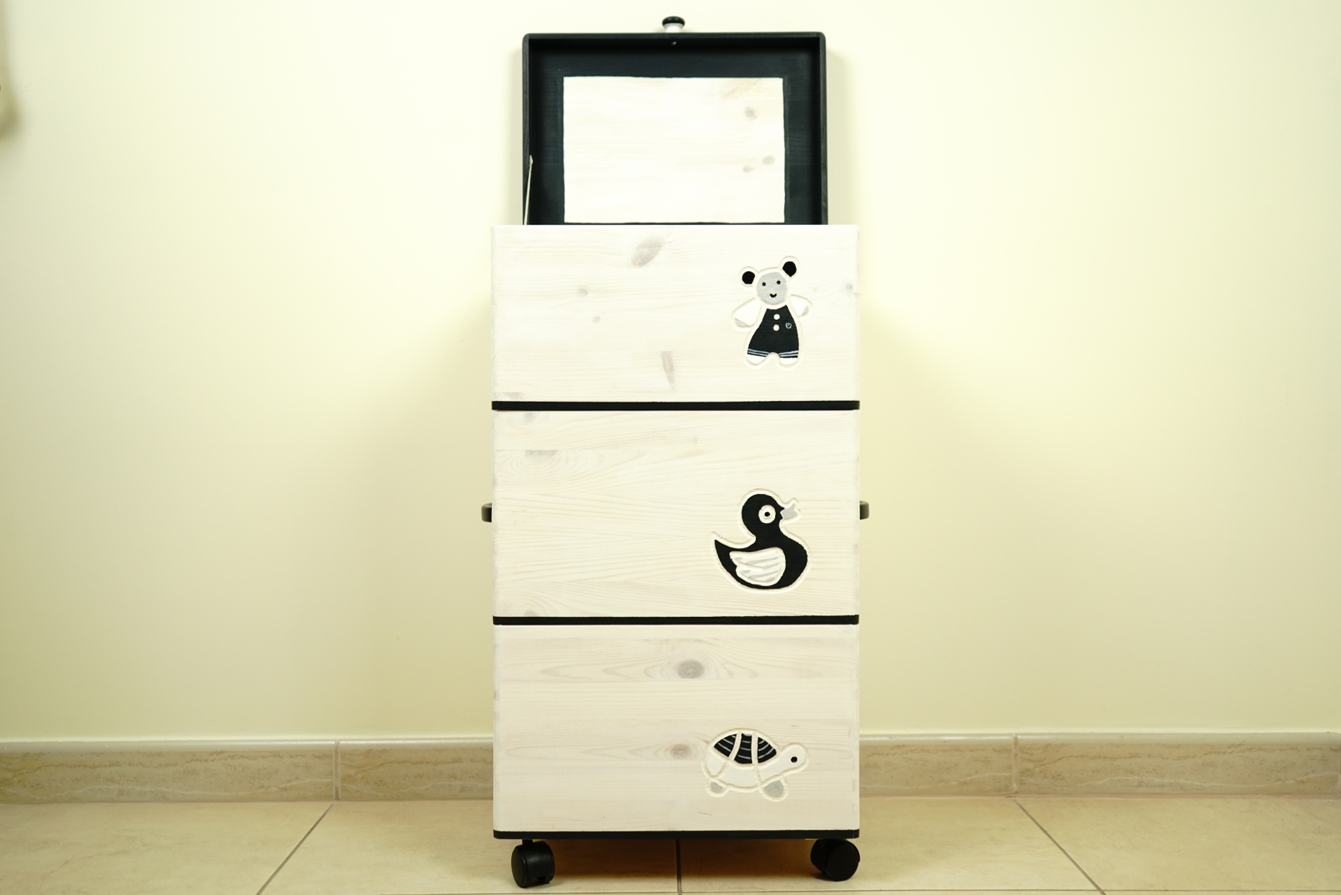Komoda na kółkach z motywem biało-czarna